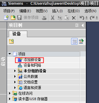 CPU的添加與連接。點擊界面左邊的“項目”,出現下級目錄,并雙擊“添加新設備”: