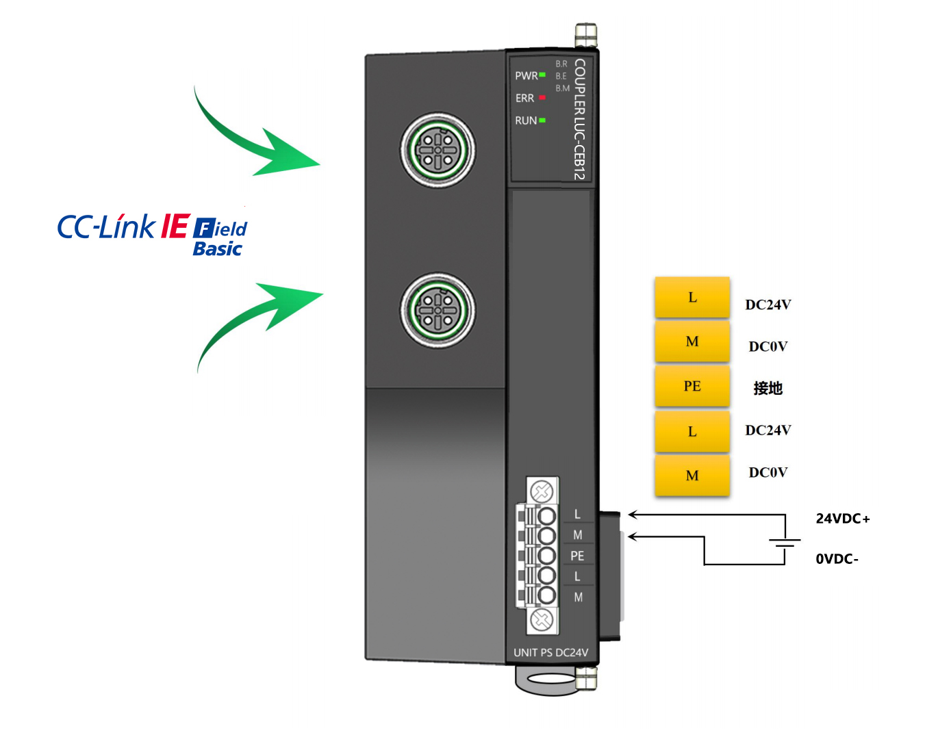 薄片型多功能分布式I/O,CCLINK IE FIELD BASIC 耦合器,2xM12,可級聯,可擴展32個模塊,24VDC