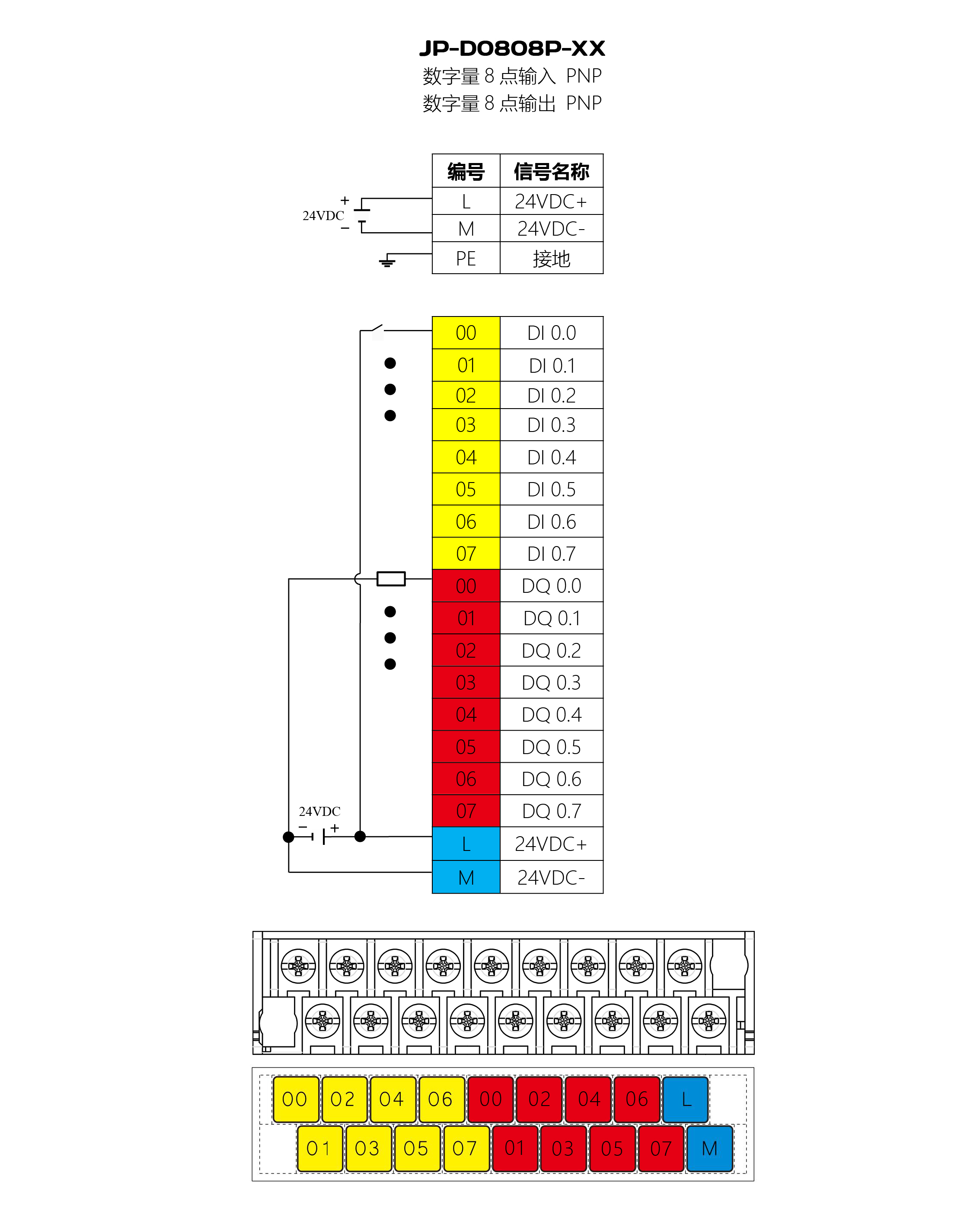 柵欄式螺釘分布式I/O,雙網(wǎng)口,可級(jí)聯(lián),支持PROFINET RT協(xié)議,8DI_PNP,8DO_PNP,0.5A,24VDC