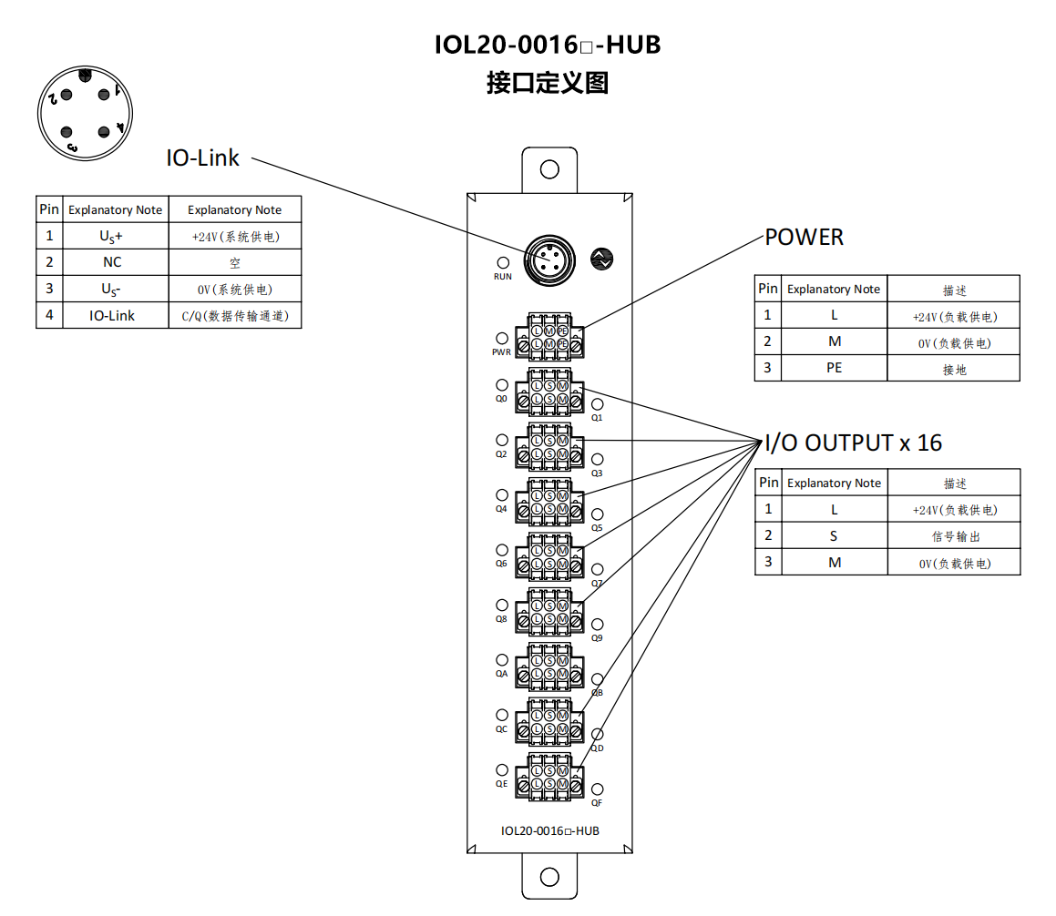1xIO-Link從站,Class A,16DO_NPN,晶體管,0.5A,24VDC,IP20防護等級