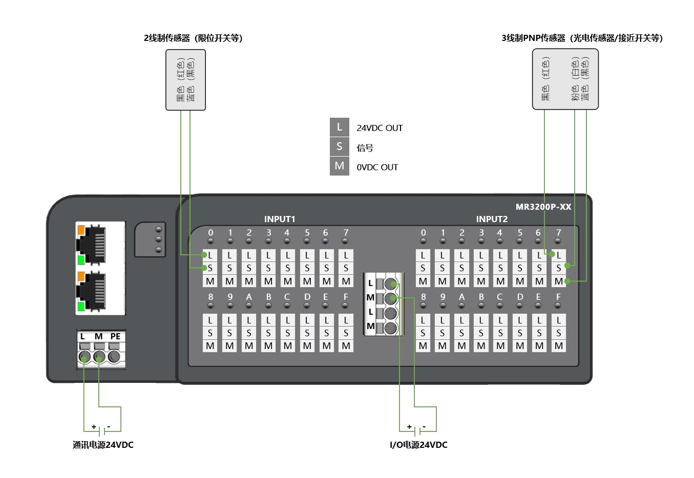 電源接口:模塊供電:3P歐式彈簧端子;負載供電:4P歐式彈簧端子