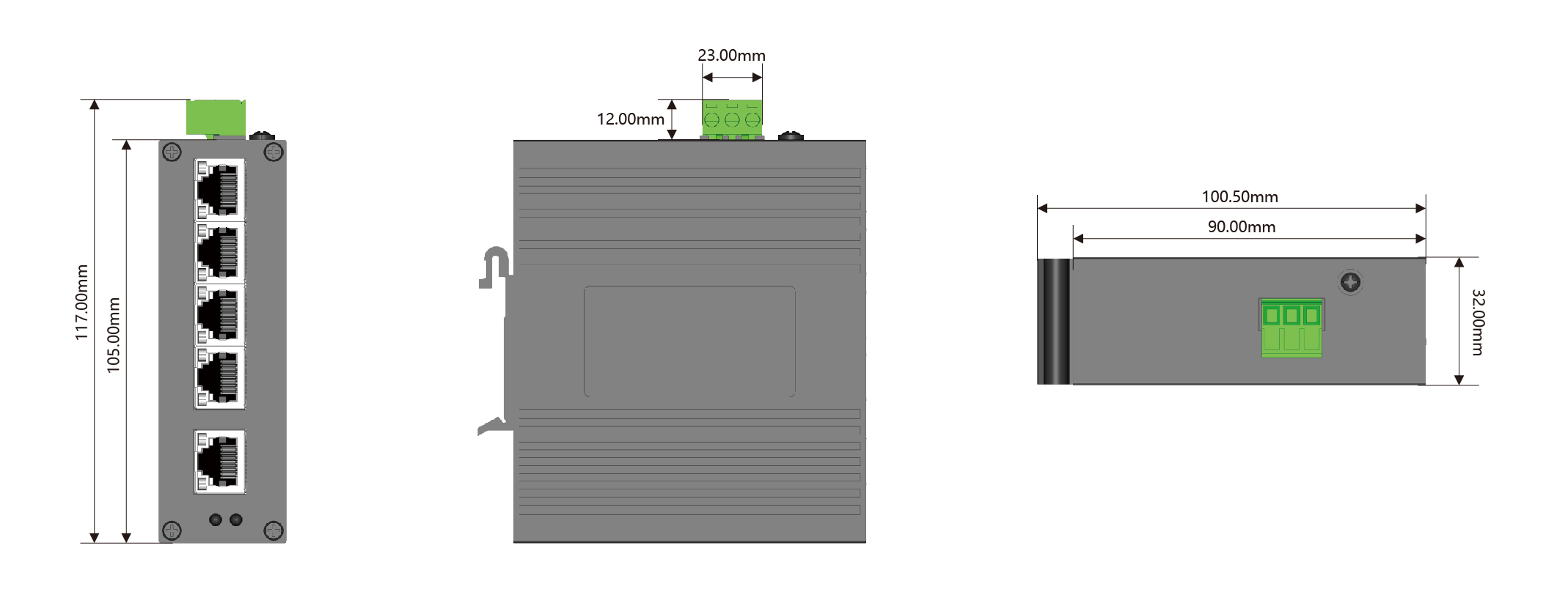 非管理型工業交換機,5電口,千兆,12V~52VDC,IP50,金屬外殼,DIN35導軌安裝